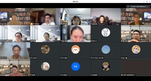 在第一周的线上学习研究中,学员们开展了黄姚古镇的基本情况,包括古镇的历史发展沿革、地理条件、空间格局以及建筑特点等方面的历史文献和资料的学习研究。同时,东南大学建筑设计研究院有限公司遗产保护研究胡石副院长,东南大学国际化示范学院副院长鉾井修一教授,东南大学土木学院穆保岗副教授分别对学员们进行了题为《传统民居建筑遗产的测绘与保护策略》、《日本京都町屋的保护和热舒适性改造案例》以及《(古)建筑物的结构安全影响因素及对策》讲座和相关知识的授课,为学员们的现场测绘工作、古建筑的结构安全的调研工作和对黄姚民居居住环境的现场调研等方面都做了坚实的基础工作。同时,夏令营培训期间,邀请当地文旅局、以及古镇管理部门的一线人员参加,有效促进了古镇保护的业务水平8月19日晚,学员们针对“黄姚建筑风貌特色”、“黄姚的地方微气候与民居舒适度”、“黄姚重点民居建筑研究”、“黄姚民居改造与微环境整治调查”四个主题进行中英语双语的工作汇报与中期答辩。法国气候建筑事务所刘宁博士主持答辩,法国气候建筑事务所尼古拉·巴若尔,东南大学建筑学院李新建教授,东南大学建筑设计研究院有限公司遗产保护研究院胡石副院长,东南大学土木学院穆保岗教授和故宫博物院古建部张小古研究员作为指导教师参加了答辩,另外,还邀请了原法国驻武汉领事馆总领事现任法国牙买加大使的贵永华先生参加,增进了中法交流。